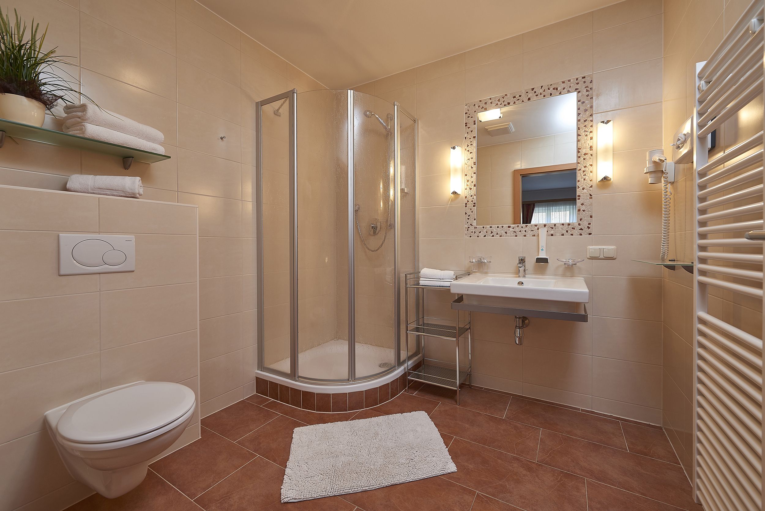- Bad mit Dusche, WC, Fön, Seife, Duschbad, Kosmetiktüchern